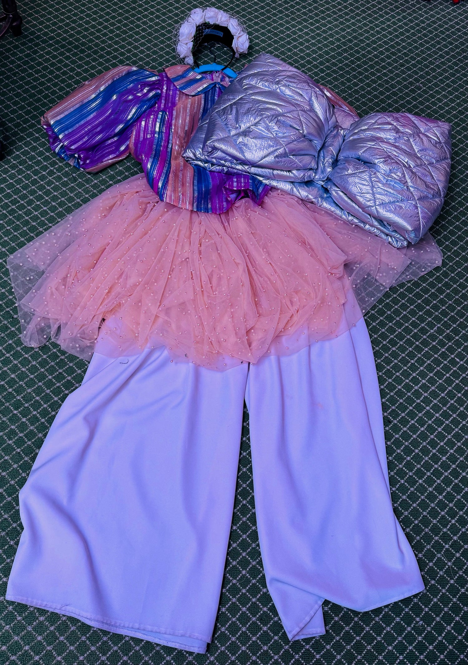 Hand painted quilted puffer skirt- a beautiful train wreck-, and other messages signed and dated-